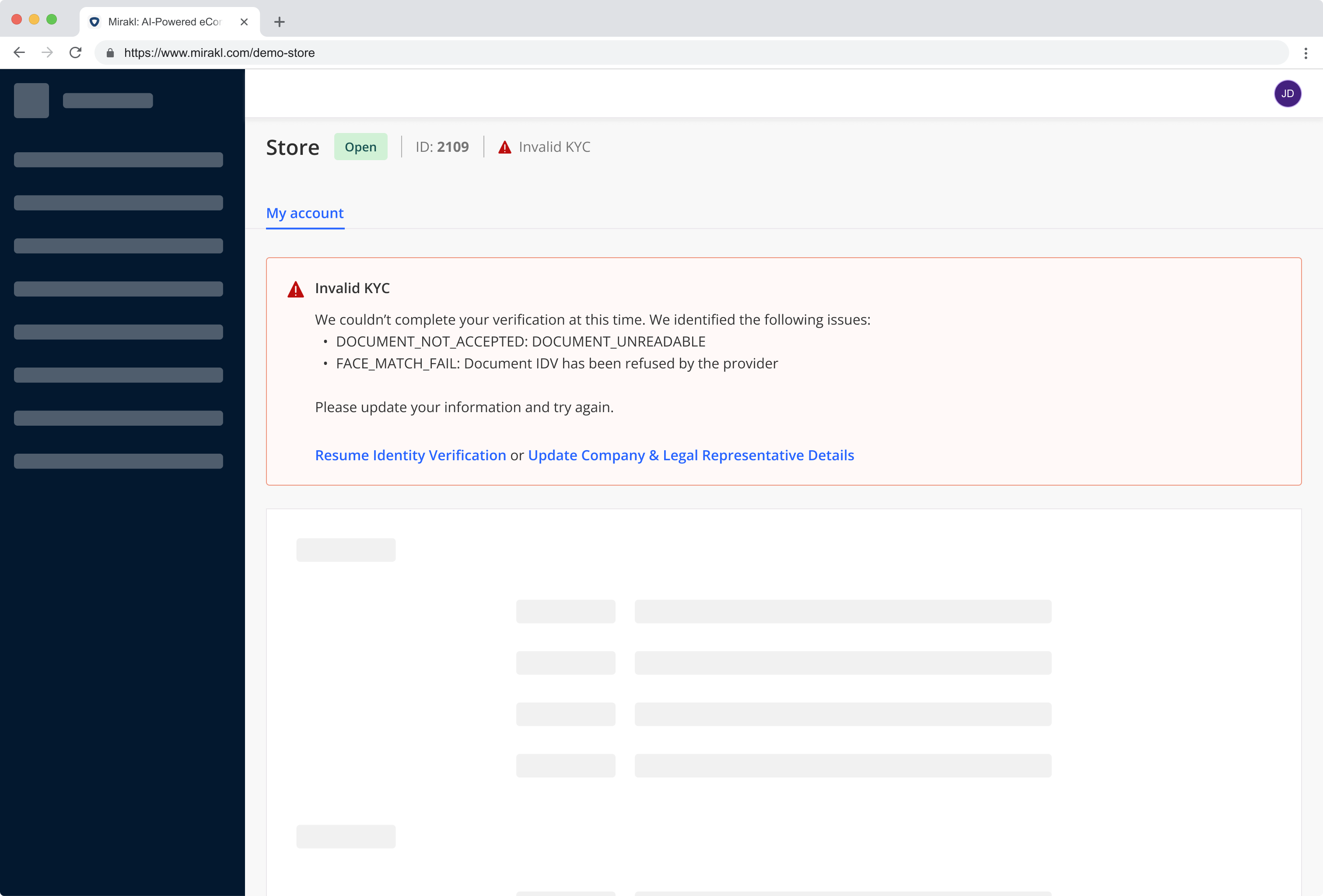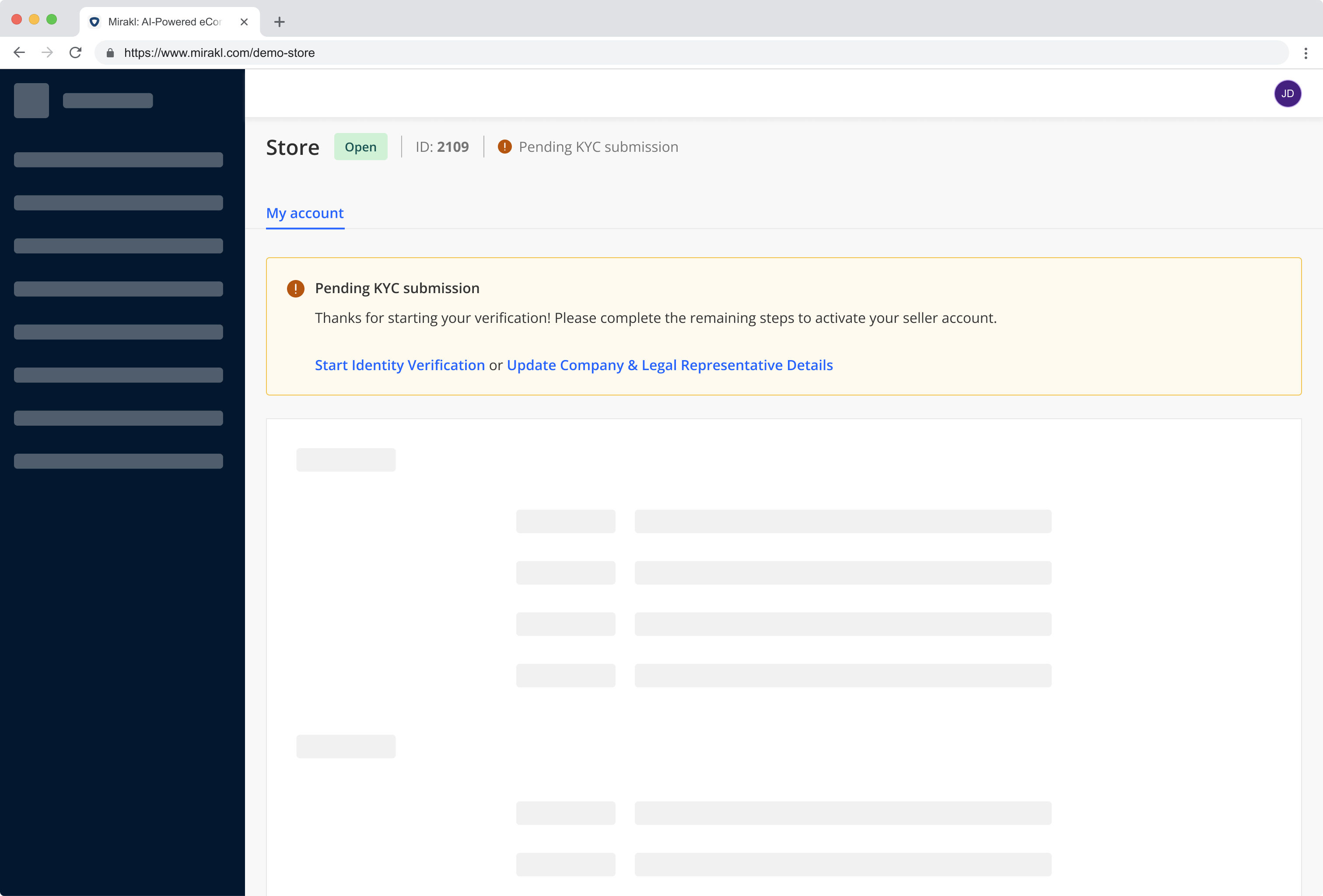 - Enable the KYC status and banner in Mirakl by contacting Mirakl Support
