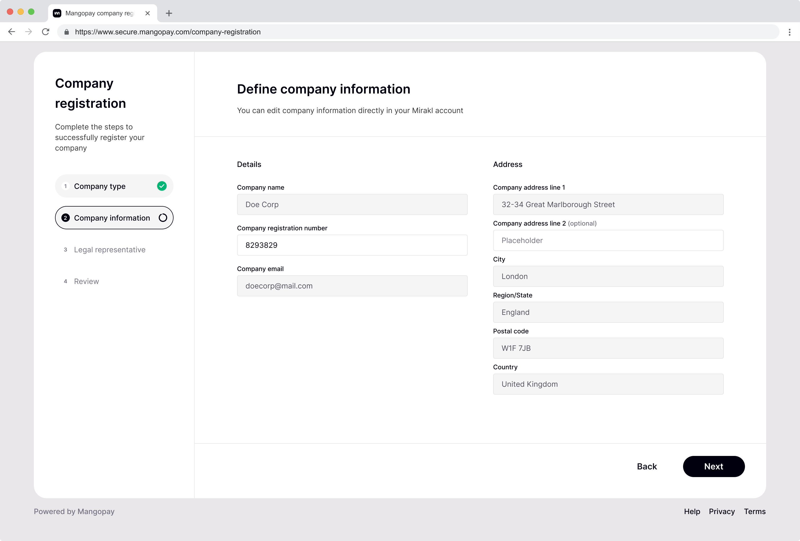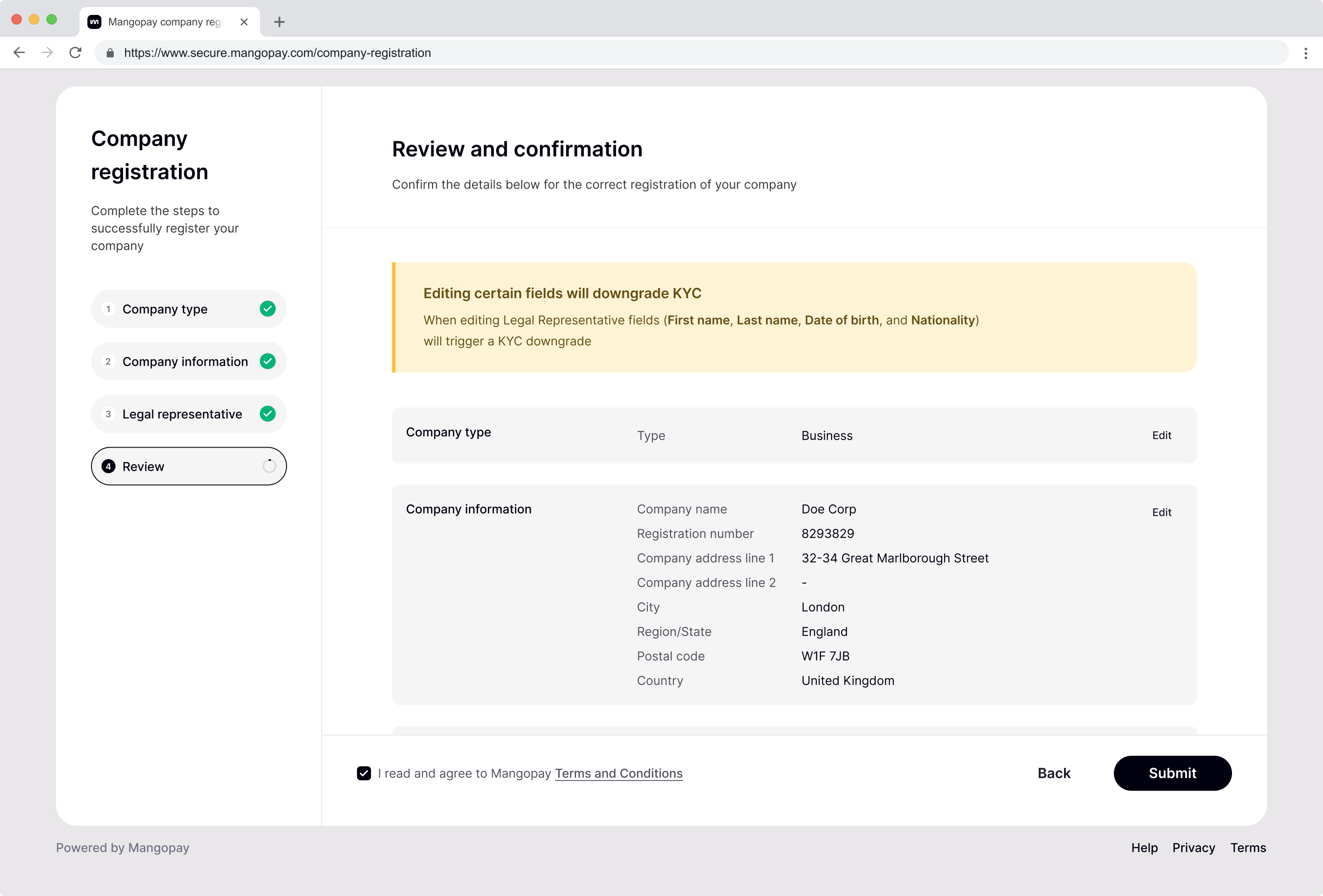Mangopay Account creation